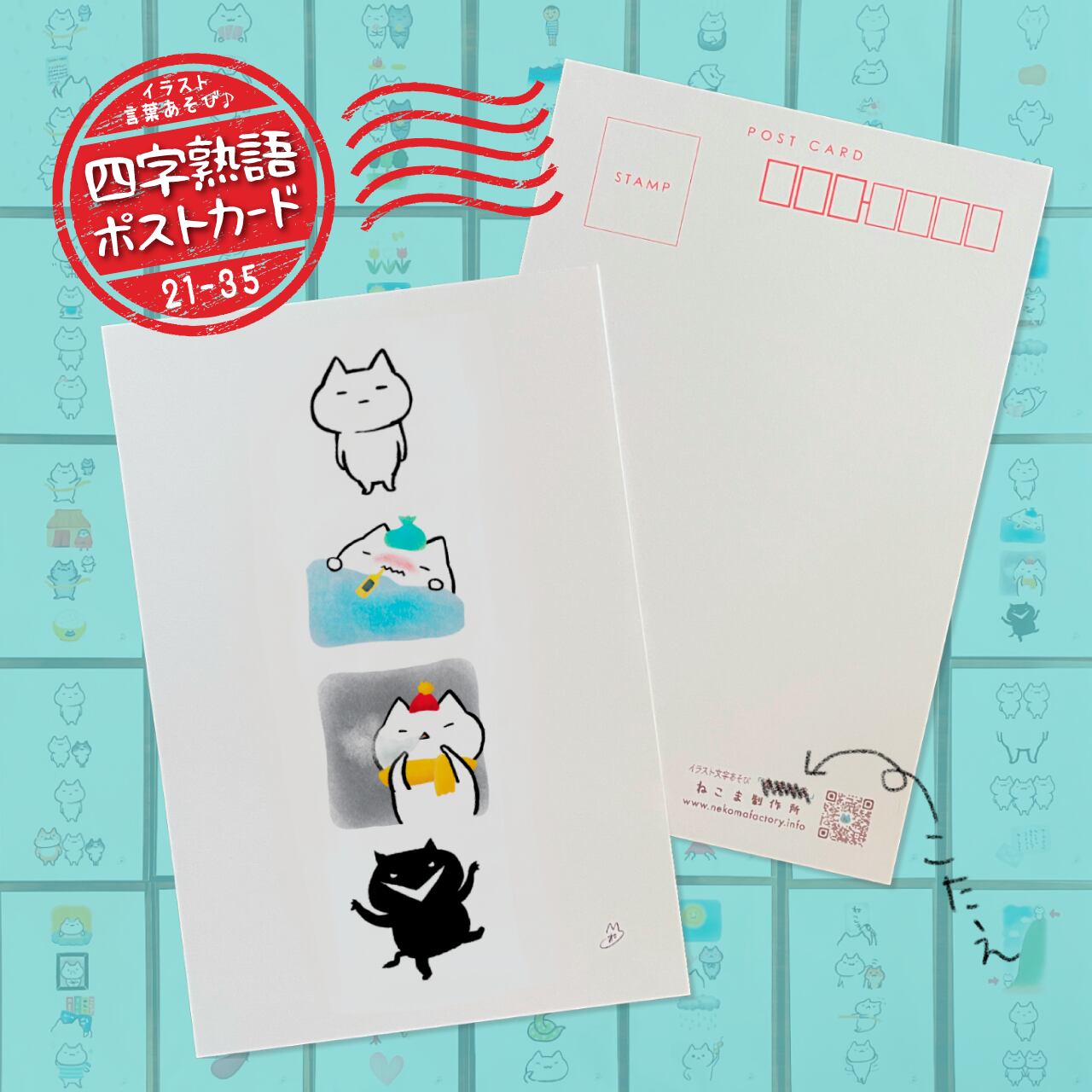 四字熟語ねこ文字ポストカード 【 イラスト言葉あそび♪ 】